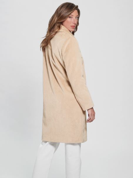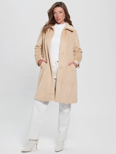 Palton De Blană Artificială Simmone Taupe Spumoasă Guess