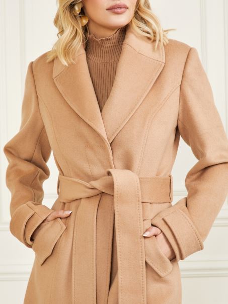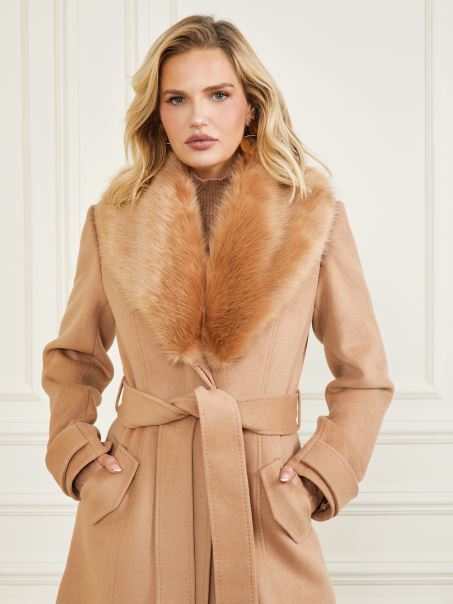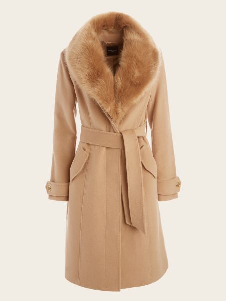Eleganță Ridicată în Felul Tău. O Haină Din Amestec De Lână, Cu Guler șal Detașabil Din Blană Artificială, Mâneci Lungi Cu Un Detaliu De Bandă La Manșetă, Curea La Spate, Curea Cu Cravată în Talie și închidere Cu Butoane.