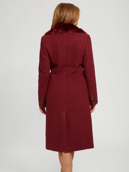 O Opțiune Sofisticată Pentru Ocaziile De Vreme Rece, Această Haină Din Twill Cu Paragate Are Un Guler Crestat și Pliat, Cu Componentă Detașabilă Din Blană Artificială și O Siluetă Cu Piept Dublu, Cu închidere Cu Nasturi în Față.