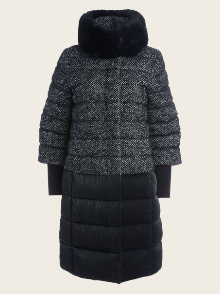 Găsește Căldură și Confort Cu Această Haină Pufoasă Groasă. Proiectat Cu O Confectionare Din Amestec De Lână în Formă De Oase, Guler Suport Din Blană Artificială, Manșete Lungi Cu Nervuri și închidere Cu Fermoar.