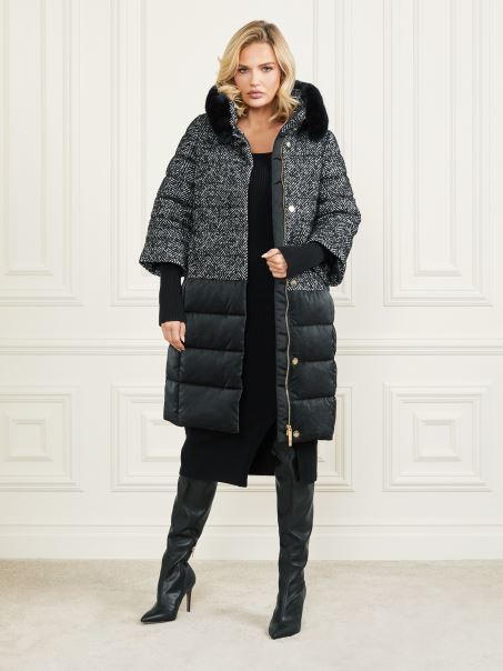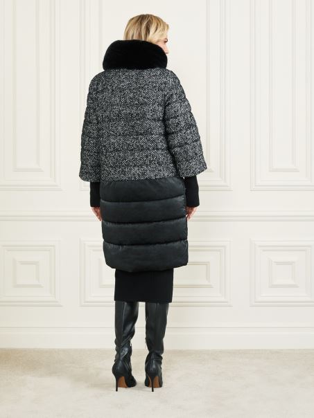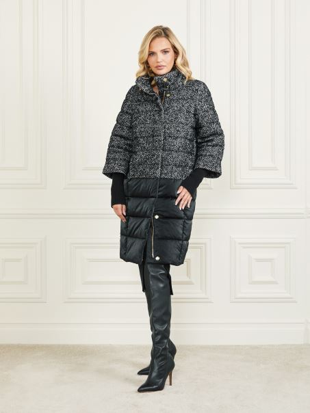 Palton Puffer Abbey Guess Chevron Alb-negru