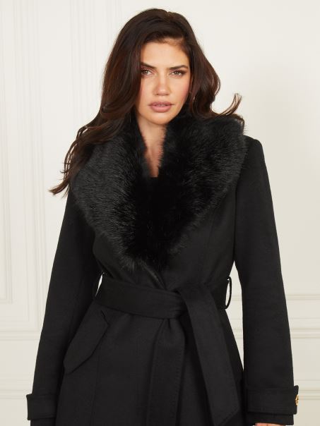 Palton Romina Din Amestec De Lână Guess Negru Jet