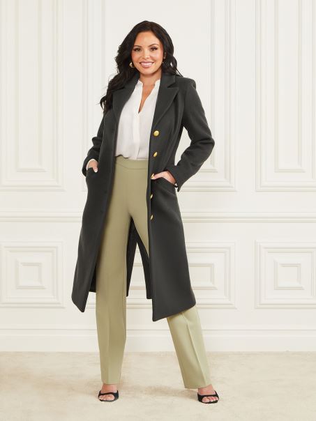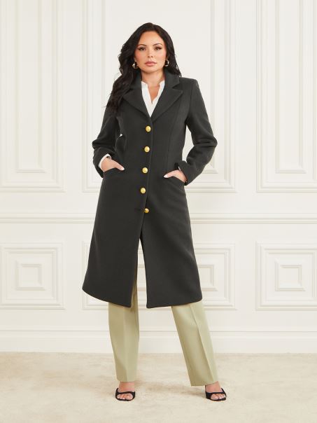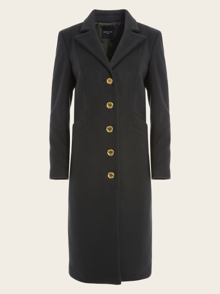 Faceți Mișcări și Faceți Totul Cu Această Haină Lungă, Cu Guler Larg Cu Rever, Nasturi Mari în Tonuri Aurii, Buzunare Frontale Duble și Manșete Cu Nasturi. Confectionat Din Lana Veritabila.