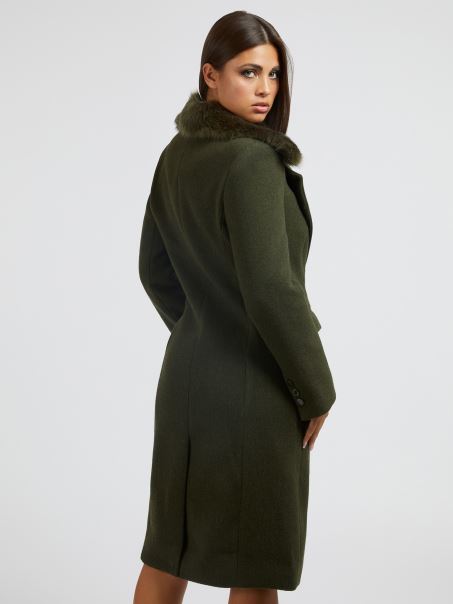 Home| Femei| îmbrăcăminte| Paltoane| Palton Verde Guess Cu Guler De Blana Artificiala Din Amestec De Lana