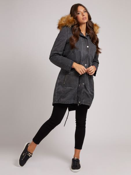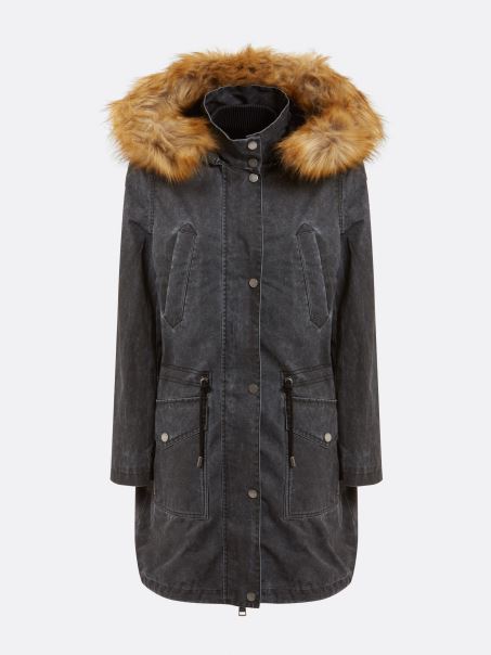 Home| Femei| îmbrăcăminte| Paltoane| Parka Cu Glugă Din Blană Artificială Guess Black