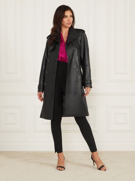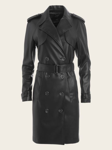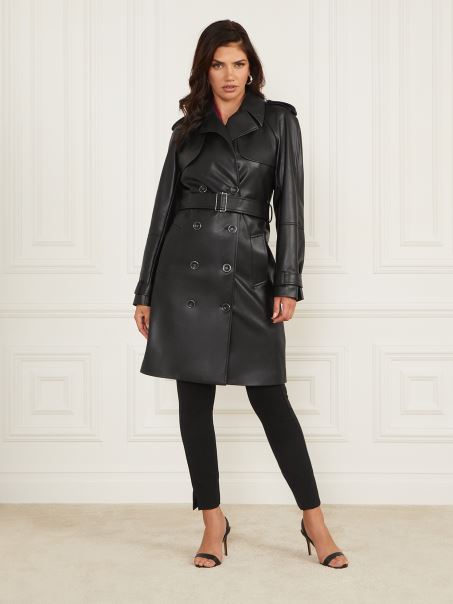 Finisajul Perfect. Un Trenci Din Piele Artificială Lustruită, Cu Guler Crestat, Clapă De Furtună, Epoleți Pe Umeri, Mâneci Lungi, Aerisire La Spate, Curea Asortată și închidere Cu Nasturi Dublu și Căptușeală Cu Logo.