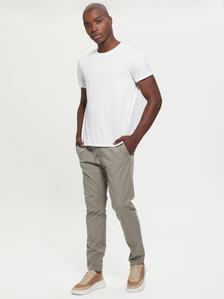 O Pereche De Pantaloni Tehnici Din Twill, Cu O Croială Obișnuită, înălțime Relaxată, Talie întinsă La Spate, Snur în Față, Buzunare Laterale înclinate și Buzunare Cu Pătura La Spate Care Asigură O Potrivire Confortabilă. Inchidere Cu Fermoar. Materii Prime Eco-responsabile.