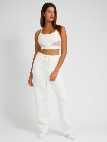 Pantalon Alb Cu Bandă Cu Logo Guess