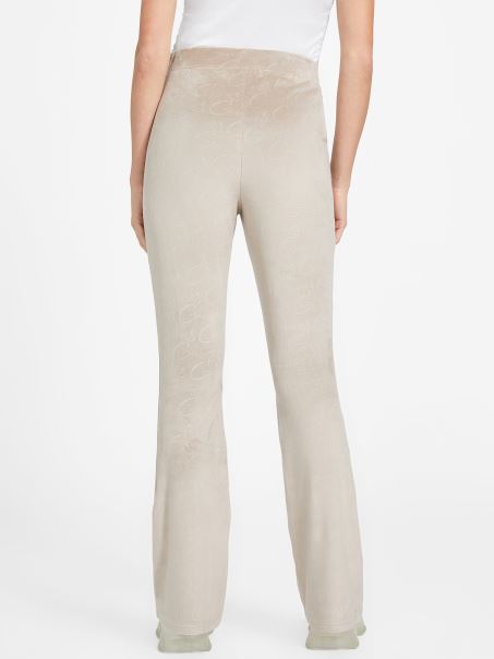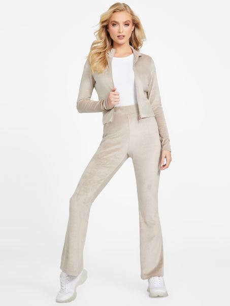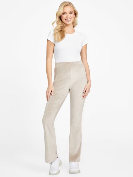 Catifea Taupe Eco Abia Pantaloni Evazati Din Velur Guess