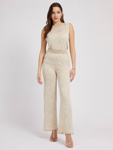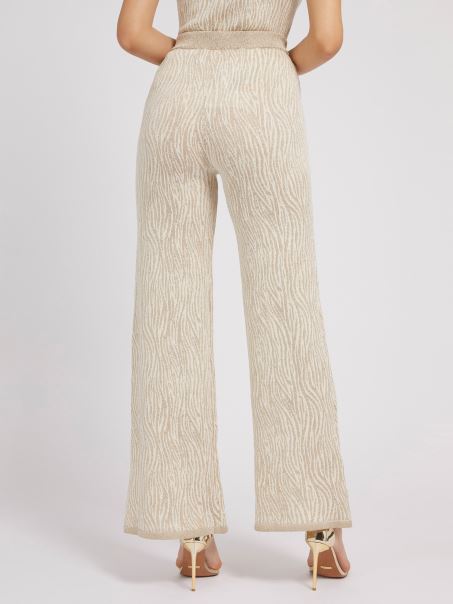 Home| Femei| îmbrăcăminte| Pantaloni| Pantalon Pulover Guess Crem Cu Efect Animalier