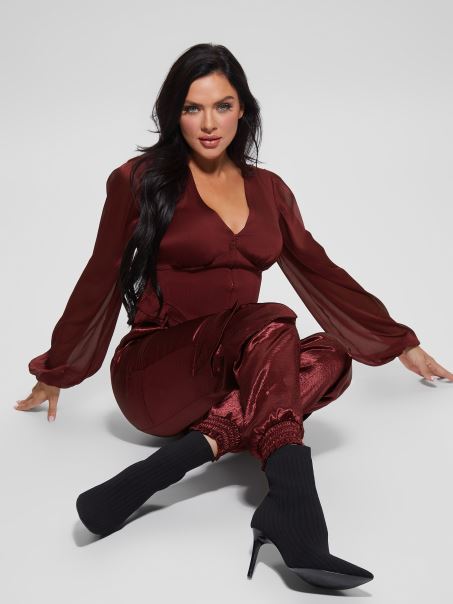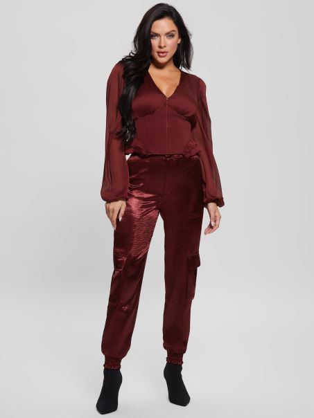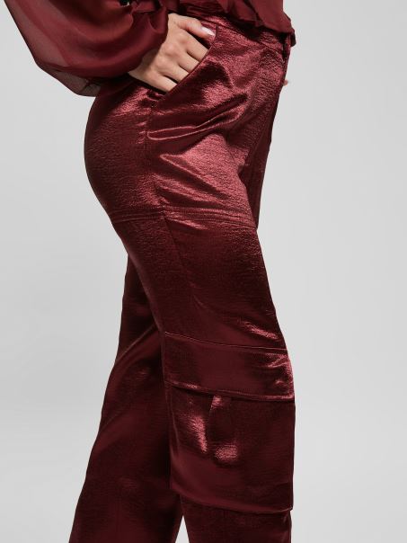 Adaosul Suprem De Glamour. Acești Pantaloni Din Satin țesut Au Buzunare Laterale Pentru încărcătură, Buzunare Plasate, Braț Cu Fermoar Franceză și Manșete Fumate. Contine Plastic Reciclat.