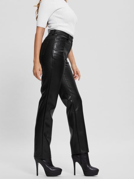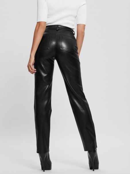 Pantaloni Drepti Din Piele Artificială Guess Kelly Negru Jet