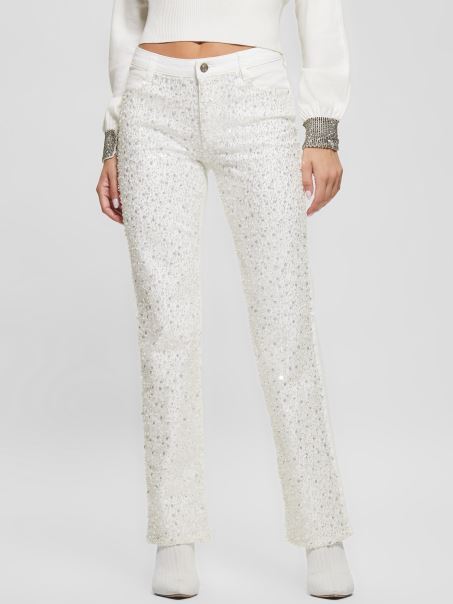 Pentru Următorul Tău Festival Sau Seară, Vei Străluci în Acești Pantaloni Cu Paiete. Cu Un Design Cu Patru Buzunare și Un Logo Triunghi Pe Buzunarul Din Spate.