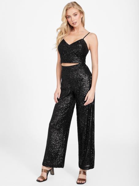 Luminează Camera în Acești Pantaloni. Proiectat Cu O Fabricație Cu Paiete, Talie înaltă și Picior Drept.