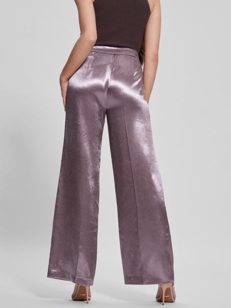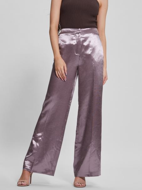 O Alternativă Strălucitoare La Fundul Tău Din Denim. Acești Pantaloni Din Satin Au Un Picior Lat, Cusături Presate Prințesă, Buzunare Cu Cusături Laterale și închidere Cu Braț în Față.