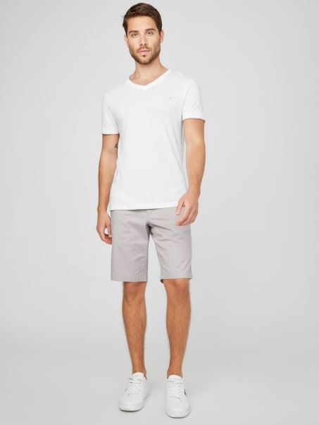 Un Clasic Casual, Această Pereche De Pantaloni Scurți țesuți Elastic Prezintă Un Design Cu Partea Frontală Plată, O Curea Cu Inel în D, Buzunare Frontale și Buzunare Cu Pătuț La Spate.