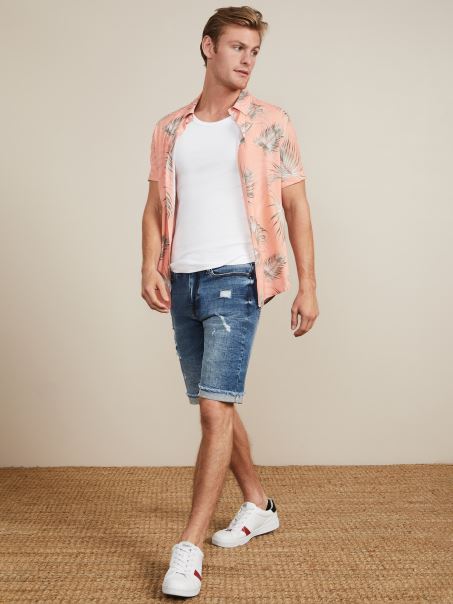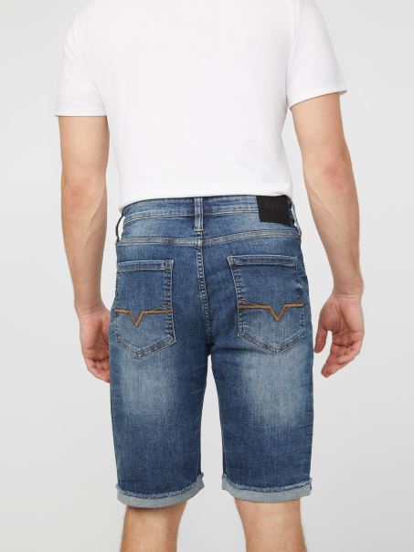 Perfecti Pentru Zilele Calduroase, Acesti Pantaloni Scurti Esentiali Din Denim La Spalare Medie Sunt Proiectati Cu Un Tiv Rulat Brut Si Un Finisaj Invechit Pentru Un Aspect Casual.