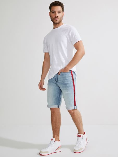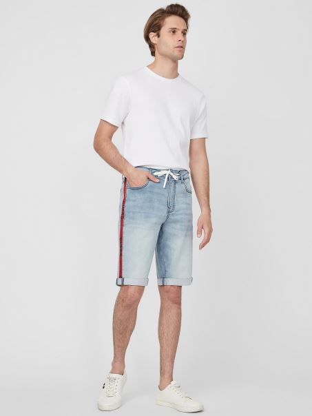 Ideali Pentru Weekend, Acești Pantaloni Scurți Din Denim Sunt Proiectați Cu Talie Mijlocie, Cu șnur De Siguranță în Talie și Bandă Cu Logo Contrastantă Pe Laterale. Contine Plastic Reciclat.