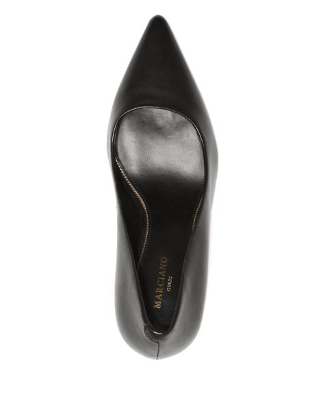O Pereche Clasică, Potrivită Cu Totul. Acest Pompe Din Piele Artificială Au Un Toc Auriu, Un Vârf Ascuțit și Un Toc Stiletto.