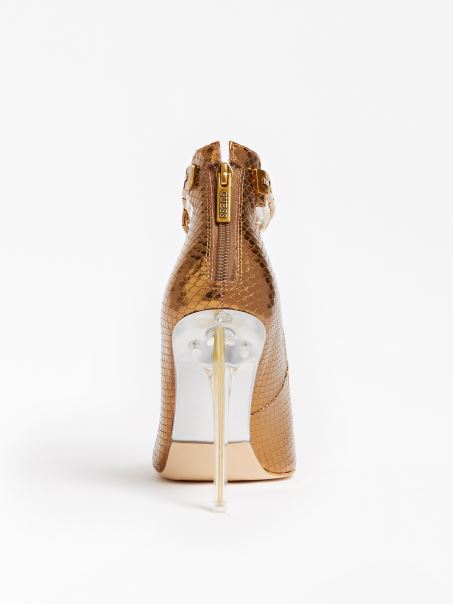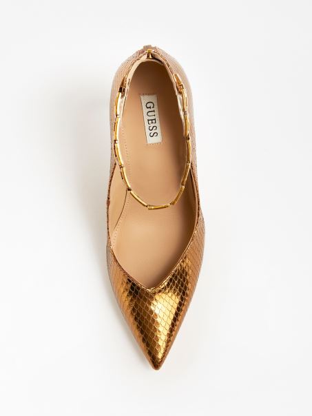 Pantof De Curte Guess Bronz Stefie Laminat Cu Aspect Croc