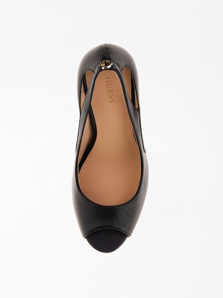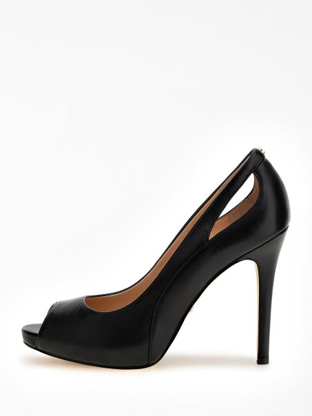 Pantof Negru Civina Din Piele Naturală Cu Vârf Deschis Guess