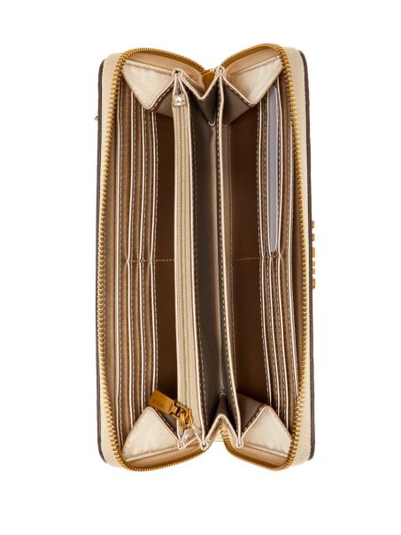Un Plus Elegant Pentru Orice Geantă. Un Portofel Mare Din Piele Artificială Pietrișată Are închidere Cu Fermoar și Emblemă Cu Logo.