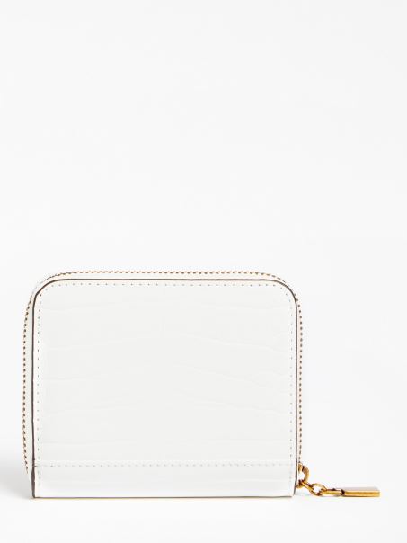 Mini Portofel Cu Imprimeu Croco Laurel Alb Guess