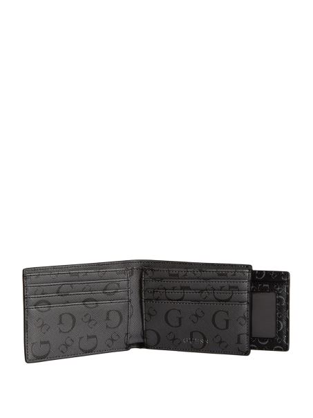 Un Portofel Clasic Bifold Cu O Răsucire. Acest Accesoriu Din Imitație De Piele Are Un Logo Imprimat Peste Tot și O Fereastră Detașabilă De Identificare Pentru Depozitare Subțire.