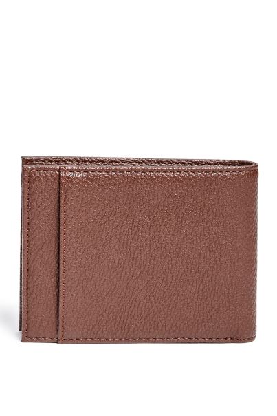 Un Portofel Atemporal Din Piele Artificială Dublu, Cu Emblemă Cu Logo Metalic în Față.