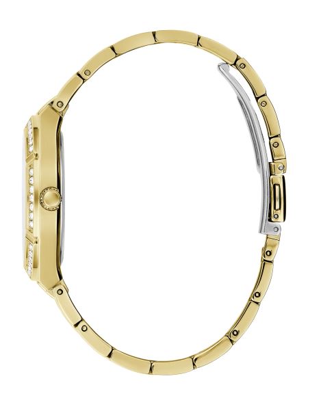 Atingerea Lustruită Perfectă Pentru Orice ținută, Acest Ceas Analogic Auriu Are Un Cadran Cu Raze De Soare De șampanie și O Lunetă încrustă Cu Cristale.