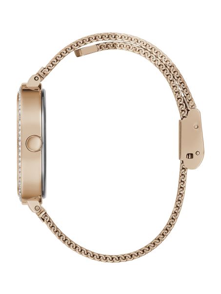 Faceți O Declarație Cu O Piesă Minimală Atunci Când Porți Acest Ceas Analogic în Ton Auriu Roz, Cu Accente De Strass în Jurul Ramei Pătrate Rotunjite și Un Cadran Elegant, în Nuanță Auriu Roz, Cu Indici în Relief. Finisat De O Brățară Elegantă Din Plasă.