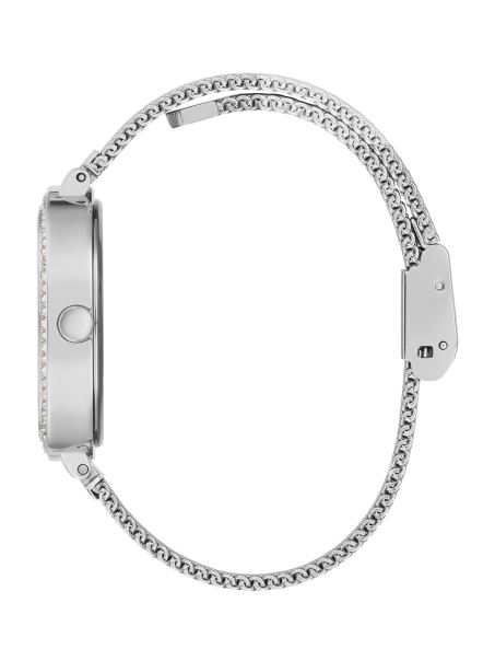Faceți O Declarație Cu O Piesă Minimală Atunci Când Purtați Acest Ceas Analogic Argintiu, Cu Accente De Strass în Jurul Ramei Pătrate Rotunjite și Un Cadran Elegant în Tonuri Argintii Cu Indici în Relief. Finisat De O Brățară Elegantă Din Plasă.
