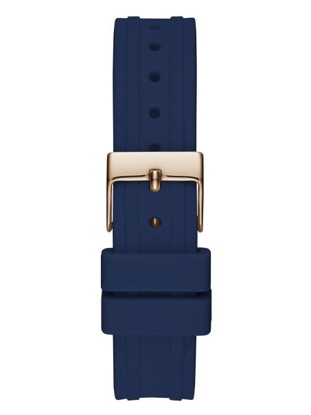 Termină-ți Aspectul Cu Acest Ceas în Tonuri De Albastru și Auriu Trandafir, Cu Un Cadran Analog Elegant, Cu Raze De Soare, Cu Cristale încrustate în Jurul Ramei.