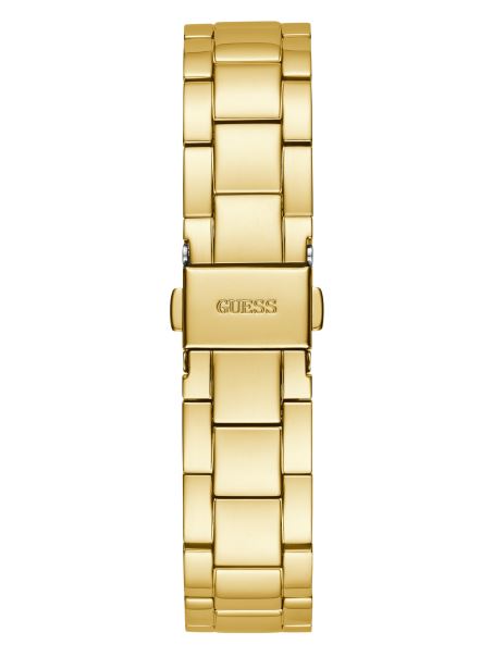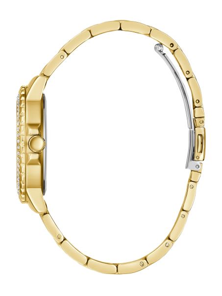 Eleganță și Stil. Acest Ceas Multifuncțional Auriu Are Ornamente Elegante Cu Strasuri în Jurul Ramei și Un Cadran Cu Raze De Soare.