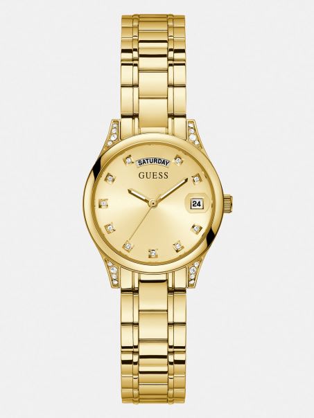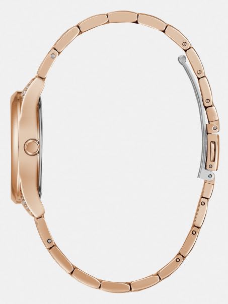 Ceas Calendar Cu Cristal Din Aur Roz Guess