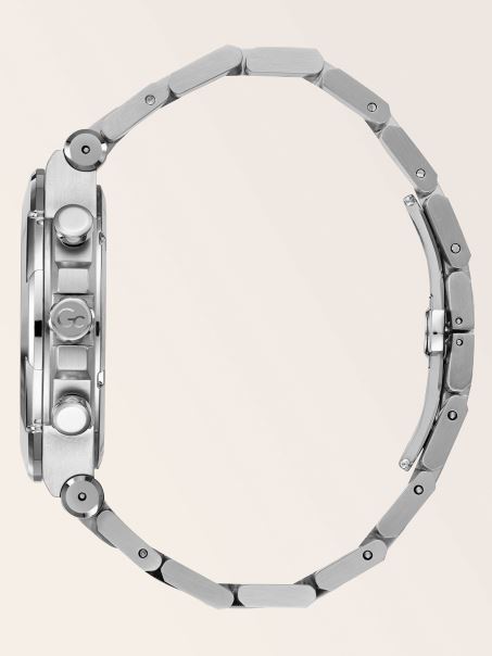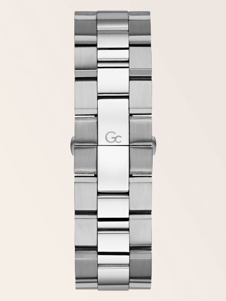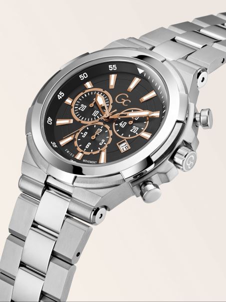 y23002fmswclasa-te Remarcat Cu Acest Ceas Cronograf Pentru Barbati Extrem De Masculin Intr-un Studiu Al Unghiurilor Geometrice Pentru Un Aspect De Design Arhitectural Modern, Cu Cadran Negru Pus In Evidenta De O Carcasă Sobră, Lustruită și Periată, în Tonul Argintiu și O Brățără Cu Zale Metalice. Cea Mai Bună Precizie Elvețiană și Stil Francez: Toate Ceasurile Gc Se Caracterizează Printr-o Mișcare De Calitate Excepțională și Un Design Unic. varianta Argintiu:
