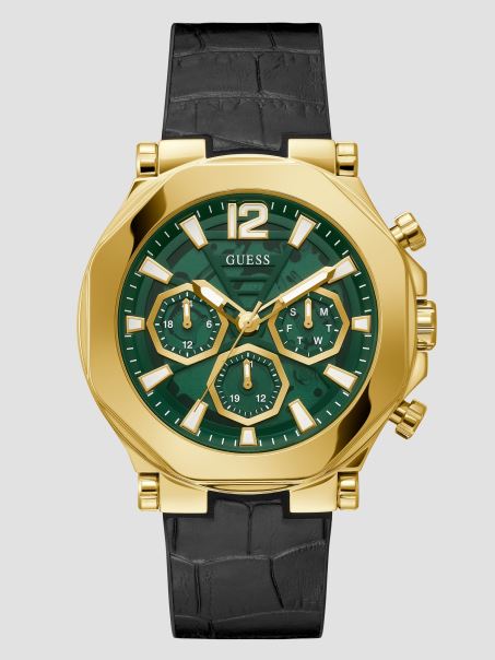 Ceas Multifuncțional Auriu Negru și Croc Negru Guess