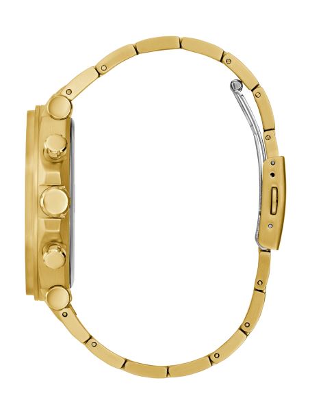 Alegeți îndrăzneala Cu Acest Ceas Auriu, Cu O Carcasă Mare Octogonală Care înconjoară Subcadrane Multifuncționale, Marcatoare Minime Ale Orelor și Un Cadran Neașteptat Neașteptat Care își Afișează Mișcarea. Completat De O Brățară Lustruită Cu Zale.