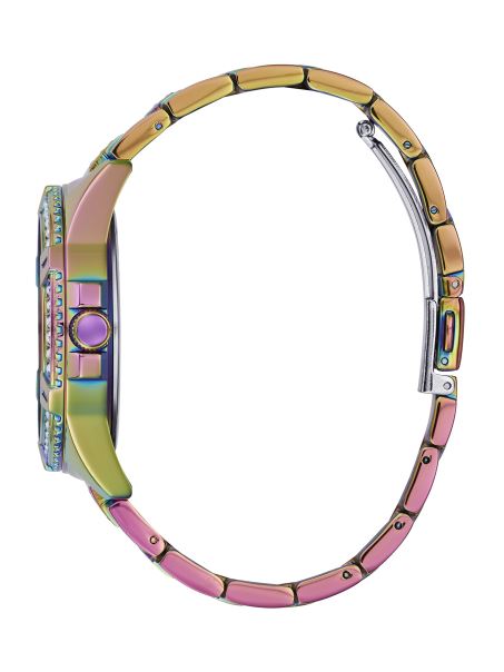 Așa Cum Se Vede în Campania Jennifer Lopez, Faceți Dintr-un Accesoriu Esențial O Piesă De Referință Cu Acest Ceas Multifuncțional Plin De Culoare, Cu O Carcasă Violet Lustruită Irizată, Cu Accente De Strass Pe Ramă. Cadran Multifunctional Cu Zi, Data Si Ora Internationala De 24 De Ore.