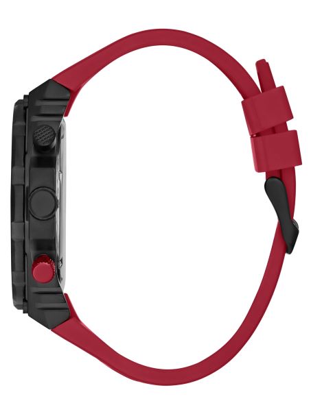 Pentru Pasionații De Hardware, Acest Ceas Prezintă Roți Dințate Expuse Pe O Carcasă Neagră Cu Accente Argintii, Cadrane Multifuncționale și O Bandă De Silicon în Roșu.