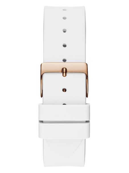 Aduceți Glamour în Fiecare Zi Cu Acest Ceas Analogic Cu Cadran Cu Strass în Două Tonuri, Carcasă Argintie și Curea Confortabilă Din Silicon Alb.