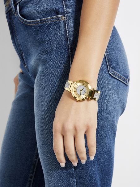 Un Ceas Glam în Stil Brățară Este Tușa Finală Perfectă Pentru Orice ținută. Această Opțiune Auriu Are Un Cadran Curat și O Brățară împodobită Cu Cristale Din Swarovski Pentru Un Aspect în Două Tonuri.