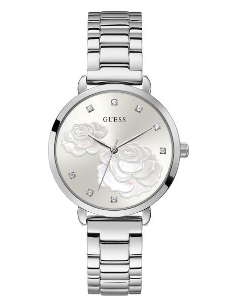Guess Ceas Analogic Cu Cristal Trandafir Argintiu Multi