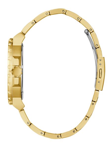 Păstrați Timpul Cu Acest Ceas Analogic Elegant, într-o Nuanță De Aur, Care Are O Lunetă și O Față Din Aluminiu în Contrast și O Bandă De Legătură Lustruită.