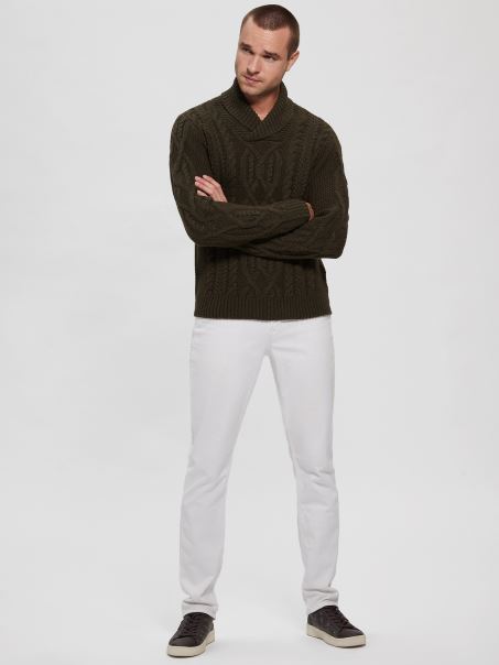 Căldură Crescută. Acest Pulover Din Amestec De Lână Are Tricot în Față și Mâneci Lungi, Guler șal și Bordură Cu Nervuri.