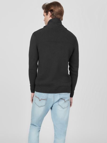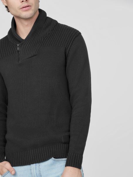 Rămâneți Confortabil și Casual în Acest Pulover Cu Guler șal, închidere Cu Jumătate De Fermoar și Manșete Cu Coaste.