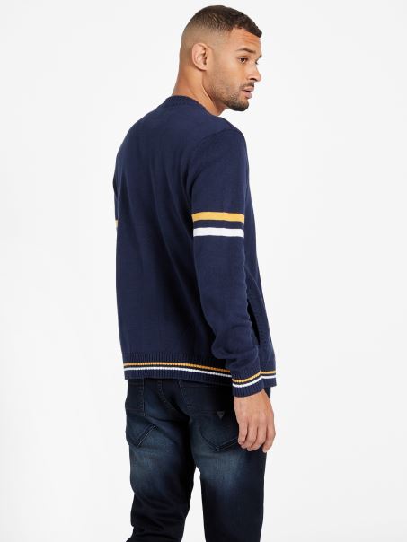 Cu Un Design Vintage Inspirat De Universități, Acest Cardigan Are Decolteu în V, Design Cu Dungi Verticale, Buzunare Laterale Duble, Bordură Cu Nervuri, Logo Triunghi și închidere Cu Nasturi în Față. Confectionat Din Fibra De Bumbac.