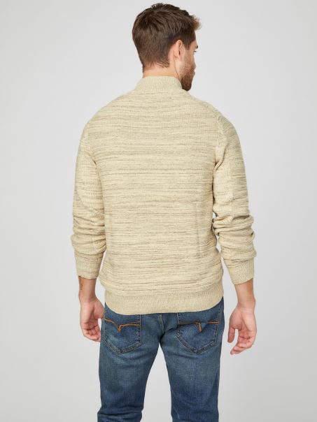 Confecționat Dintr-o Tricot Maro, Acest Pulover Cu Fermoar Are Gât Fals, Plasture Cu Logo în Față și Buzunare Laterale.