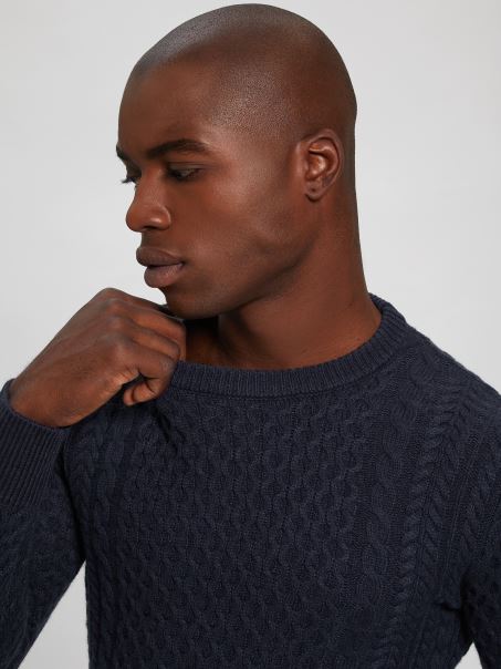 Guess Paise Norvegian Pulover Din Amestec De Lână Albastru Elegant