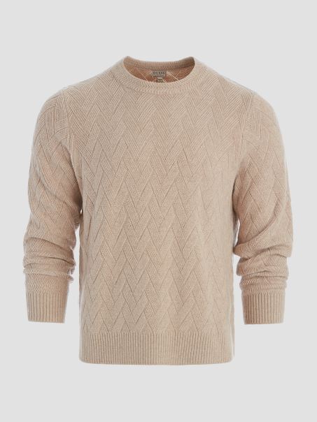 Actualizarea Pe Care ți-o Cere Colecția De Vreme Rece. Acest Pulover Cu Mânecă Lungă Are Un Model Complicat De Tricot Din țesătură De Coș și Decolteu Cu Nervuri.